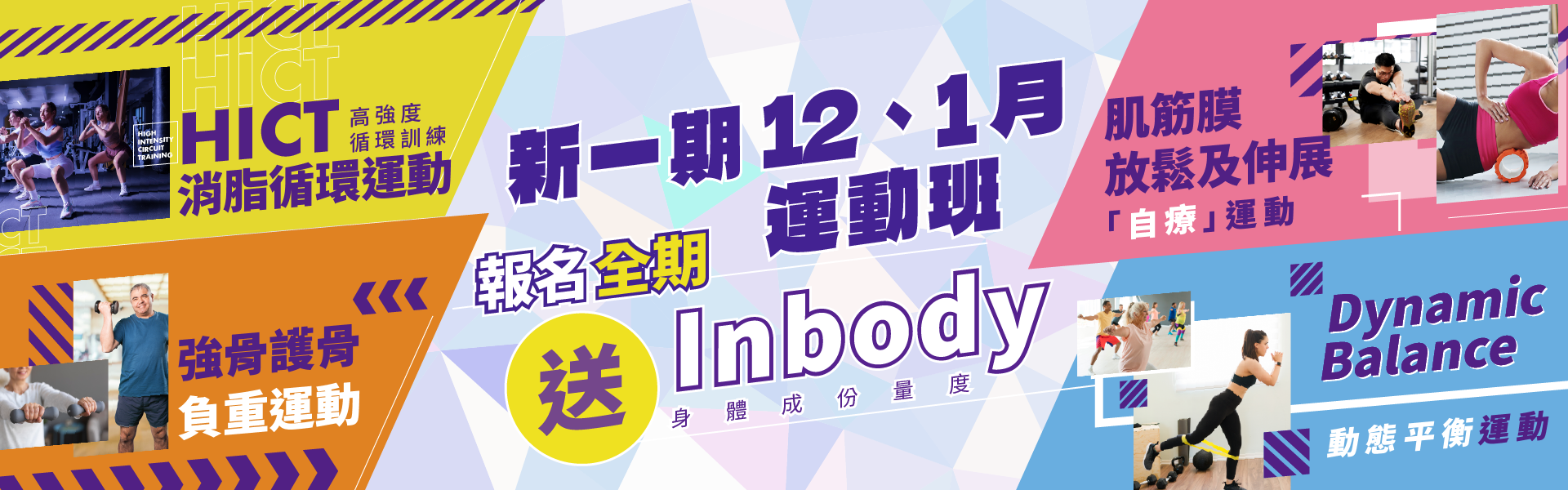 即日起至2026年1月15日,凡參加全期運動訓練,即送In Body身體成份量度測試2次,分別於全期訓練開始前及完結後進行*﹗